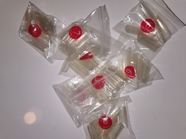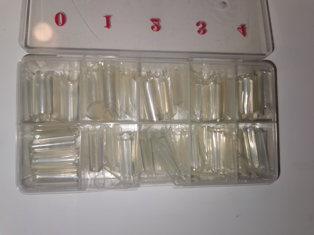 Ya van varias veces que adquiero este producto y siempre llega bien. Es tal cual como viene en la imagen, el tono es cristal transparente y en ende to son curvatura C. Contiene 500 piezas y si. Extra largas