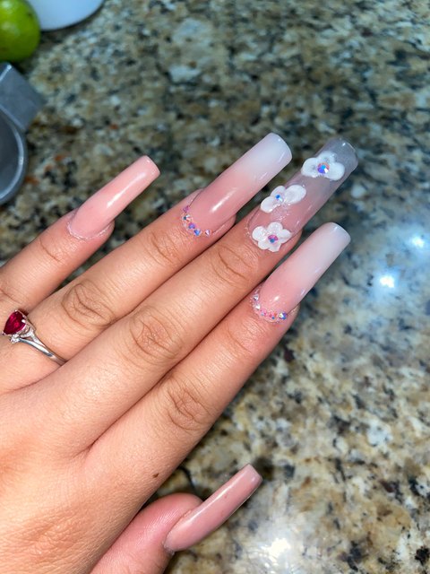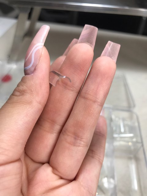 4. Starting at cuticle, press on & hold for 5 seconds, please do not leave air bubbles on the artificial and natural nails;