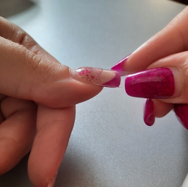 1. File the sides and cuticle area for an accurate fit with 240 grit nail file;