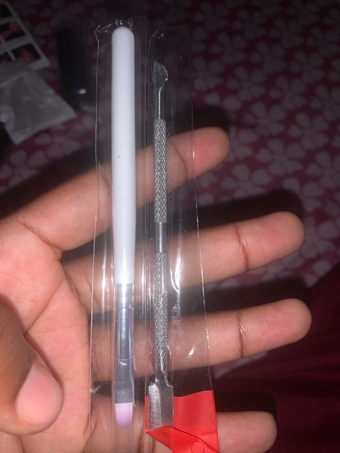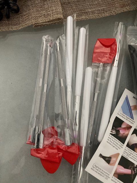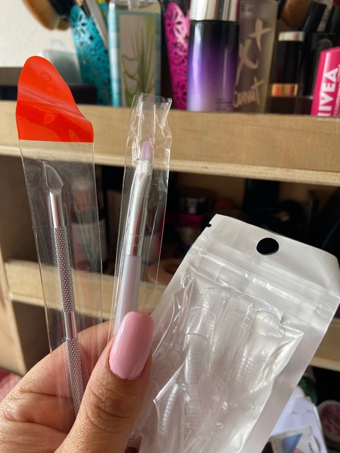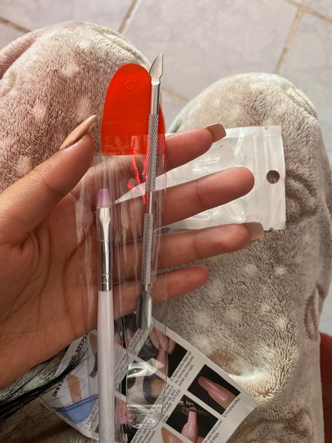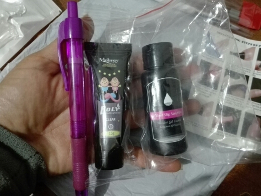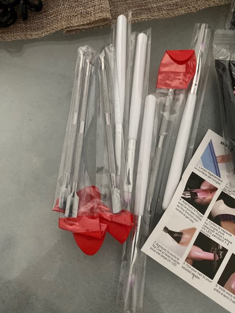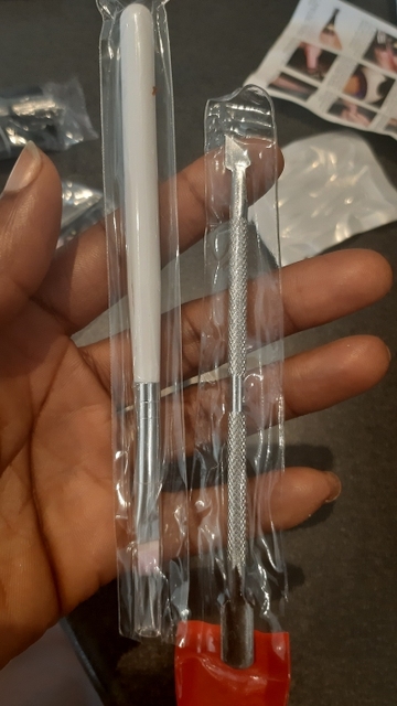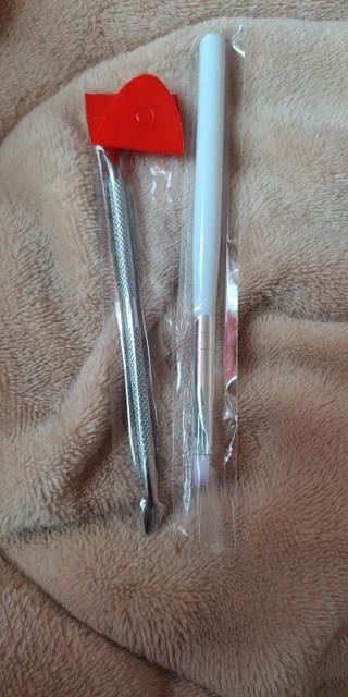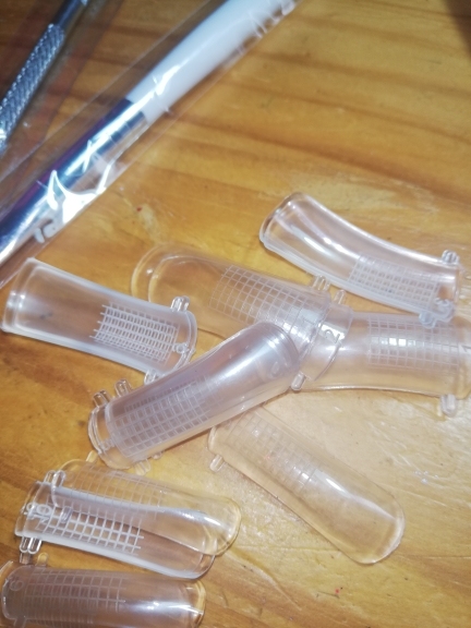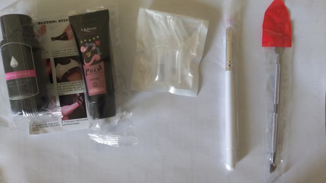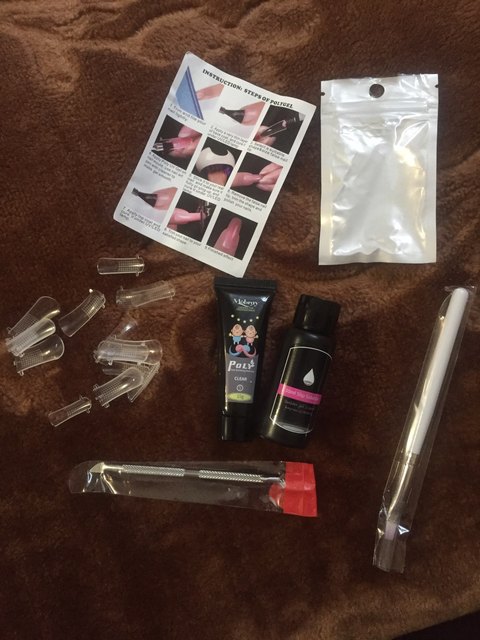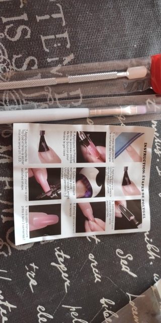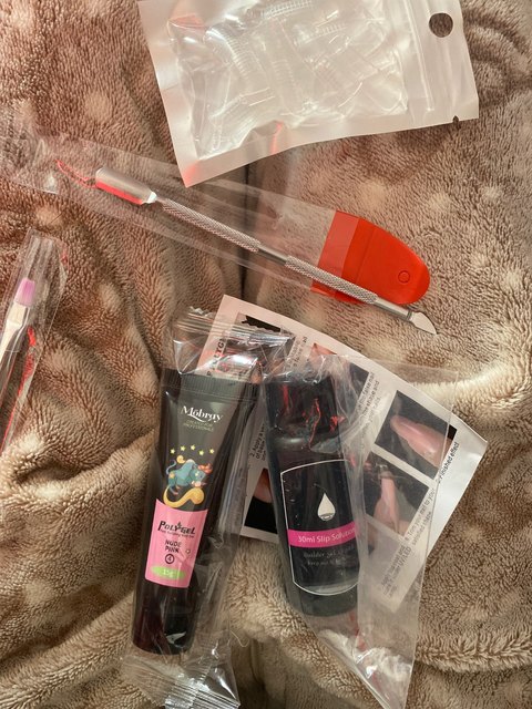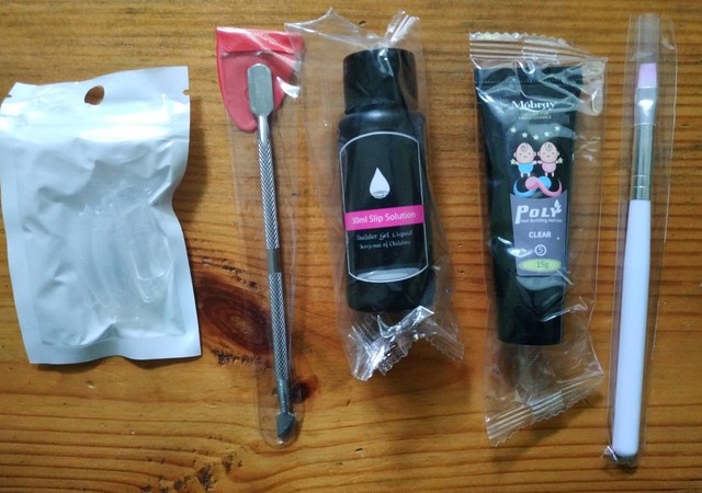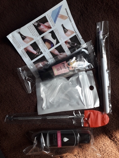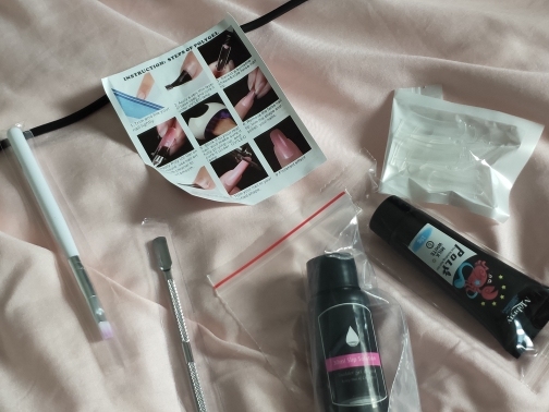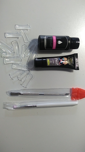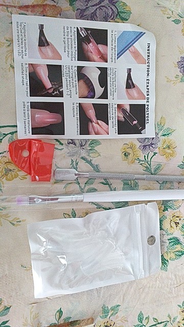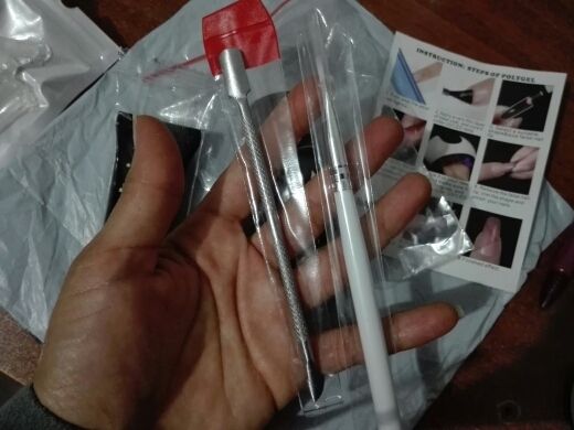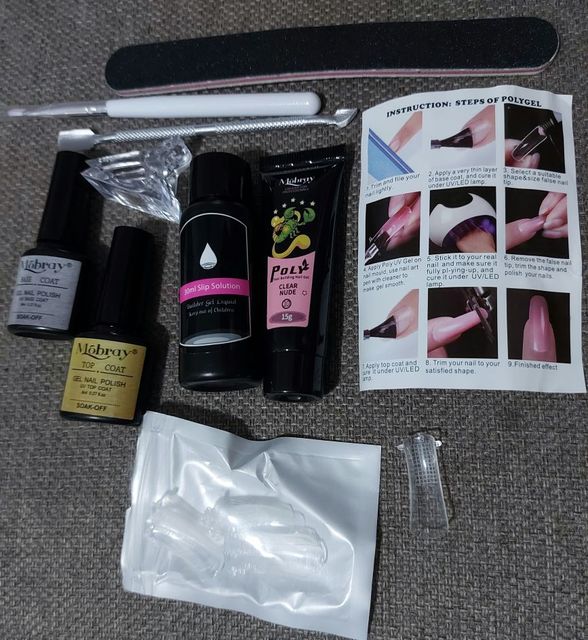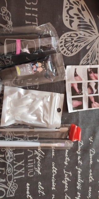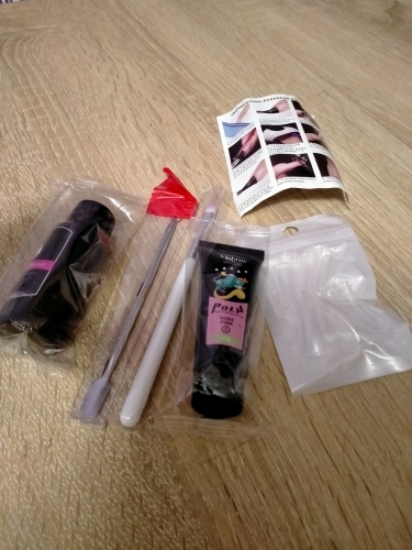 The set for study is excellent. Just a little bit. Each item is packed separately. On the tube with liquid and gel there is additional protection. The brush is very soft. The pusher is smooth, with treated edges. The types were disappointing. Total 10 sizes of 2 pieces each. Made of very flimsy, thin plastic. In their form they make an arc, because of which their nails will be “beak”.
