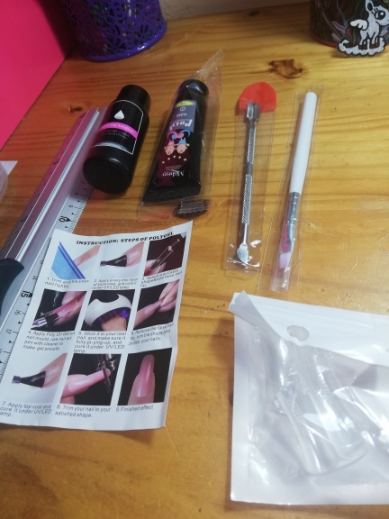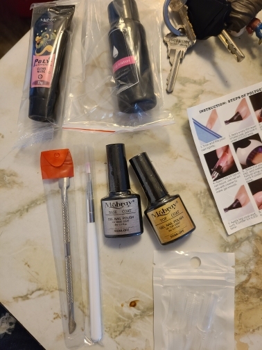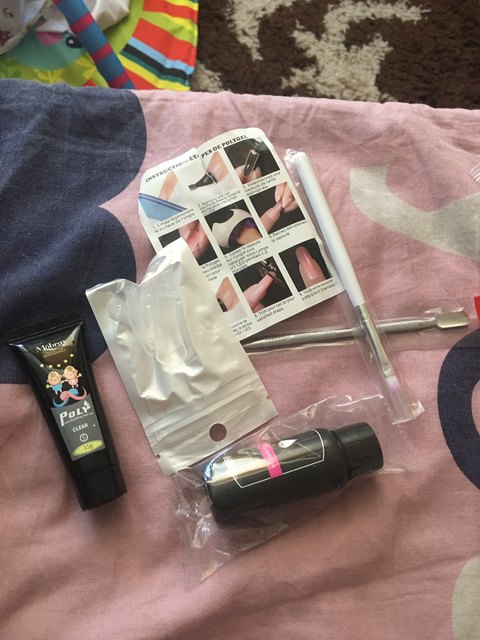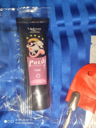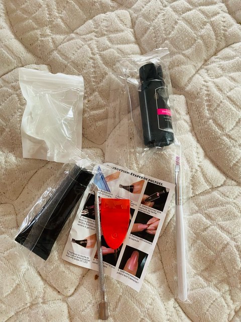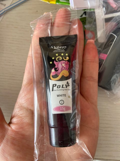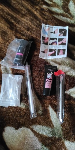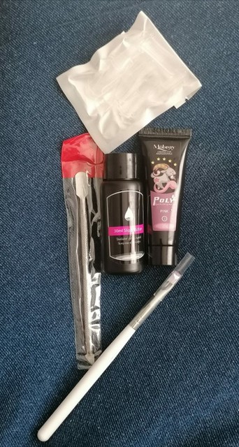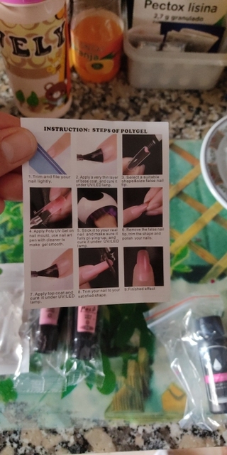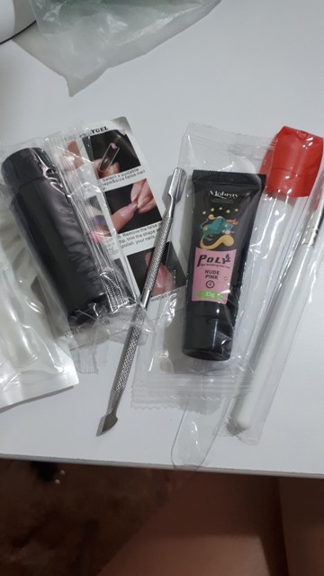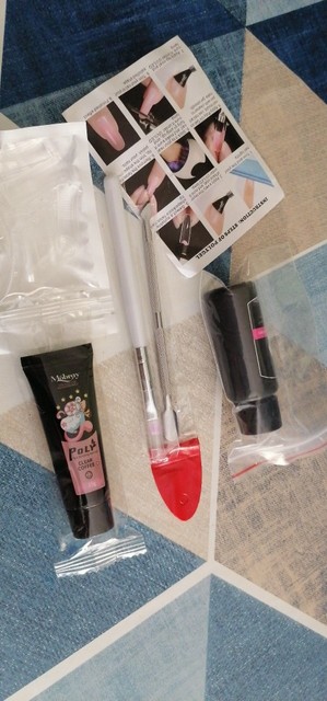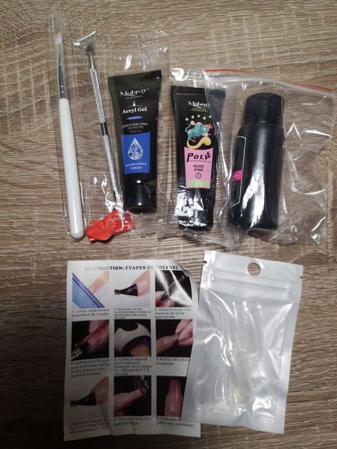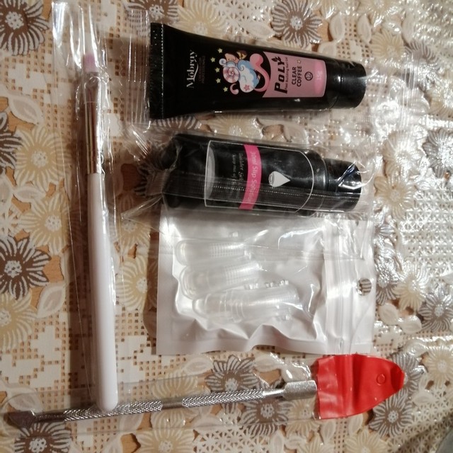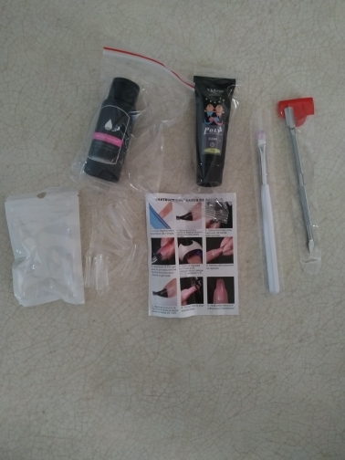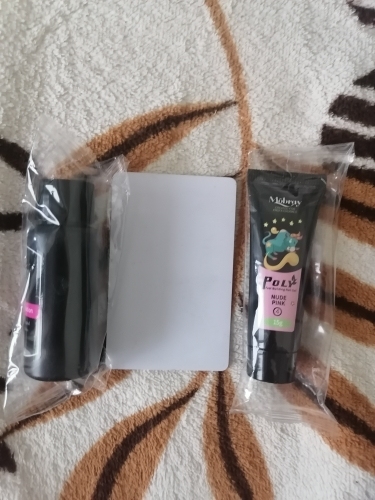 The product corresponds to the description. A tube of polygel is certainly too small and I think it for once, but for home use it will come down. I tried to increase one nail, without primer A and the base does not hold at all. Delivery is fast, only 6 days to Pyaterochka.