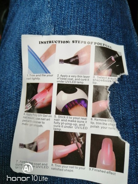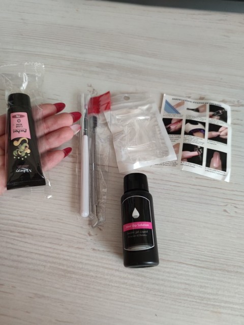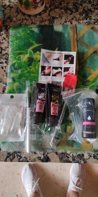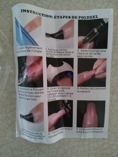 Long delivery. Took for personal use. I have a index finger on my left hand with a beak nail. Therefore, I took it for leveling one nail. On the photo from above is my natural nail, from below, worn. For the first time I had to hang around, but, yutub to help. The gel is pleasant, fine-grained, tips for narrow and medium nails, for wide, will not work, good quality. Thanks to the 3% reviews, with a description and with photo extensions. The rest of the reviews are empty and nothing. Write, when you try in work, it will help customers make their choice, not the volume and useless photos of the kit that is on the store’s site!!! Recommend. The filling capacity is good, like the quality.