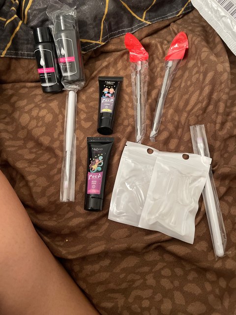 Everything came whole, but very long, it upset 1,5 months. Poly gel small, size with finger long. All products came in separate bag