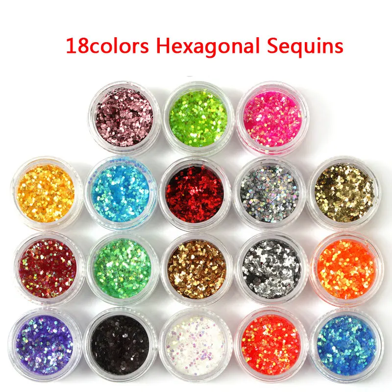 18 Pots 18 Colors Hexagon Glitter Decoration