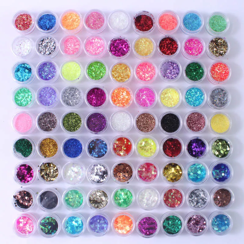 18 Pots 18 Colors Hexagon Glitter Decoration
