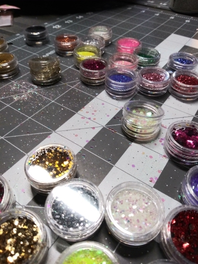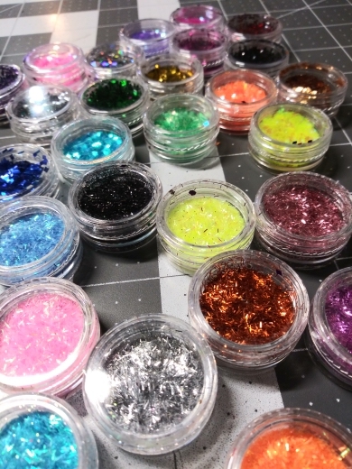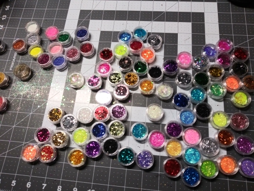 Fast delivery. Arrived in a puffy mailer and the inside is covered in glitter. A few of the lids were almost off causing the glitter bomb. It was not that much and a color I don’t like so no big deal. I tightened every lid, blew off the extra glitter and put them in a box. I bought it for the stuff that looks like sticks but the diamond shaped ones are very nice. Very happy. No communication was necessary. Highly recommended.