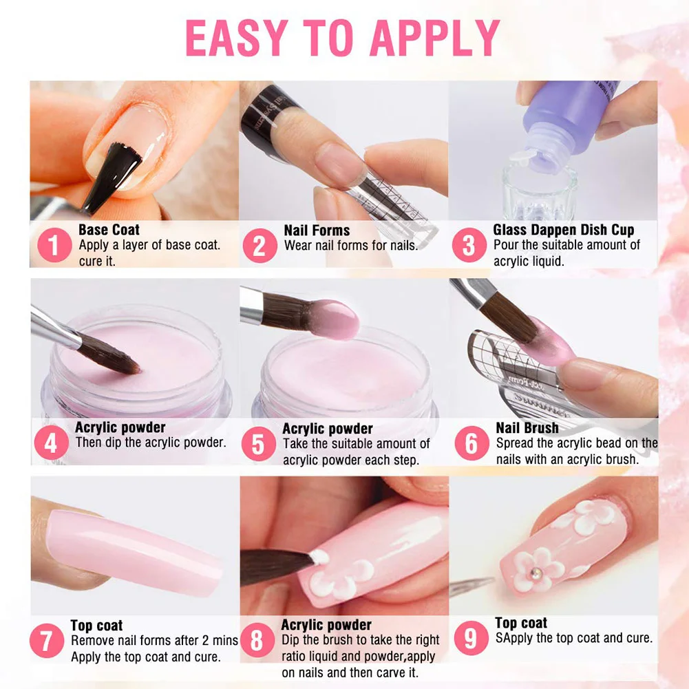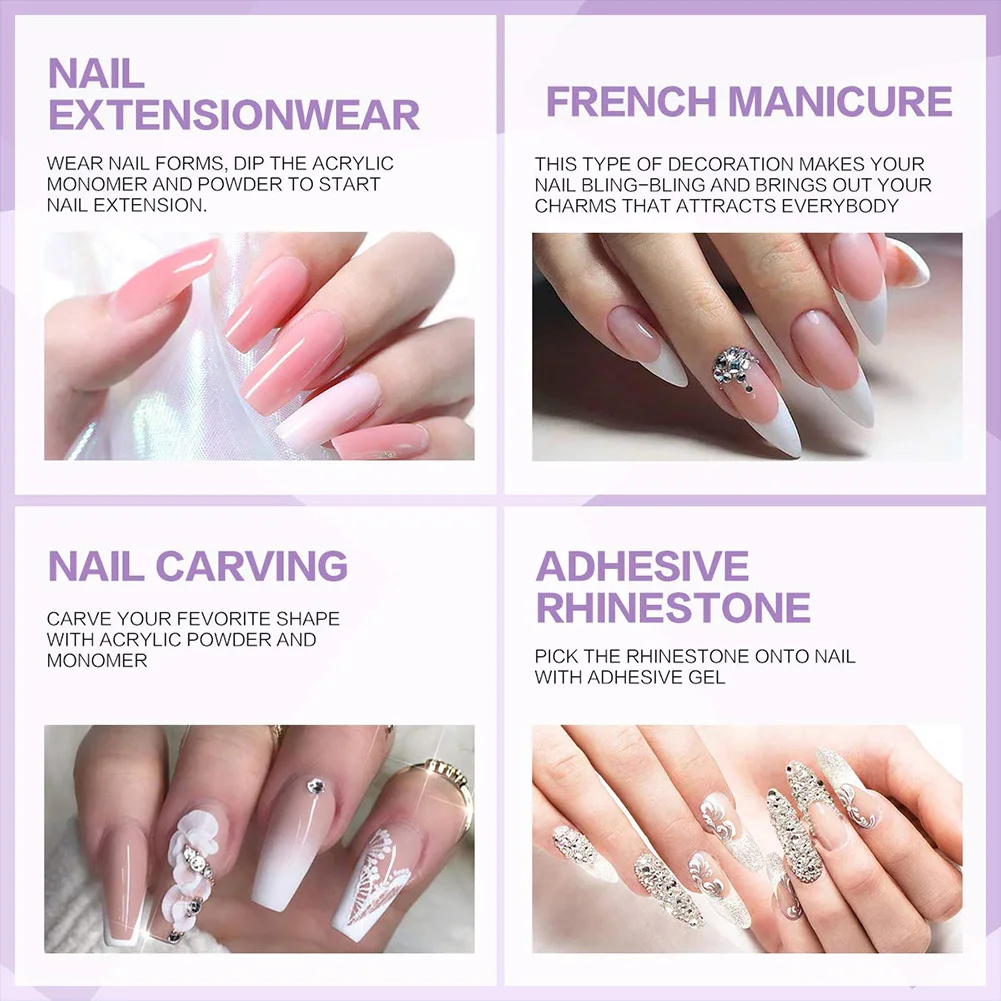*2. Easy to use. Just mix the acrylic powder and monomer into the glass cup, then apply to your nail with carving pen.