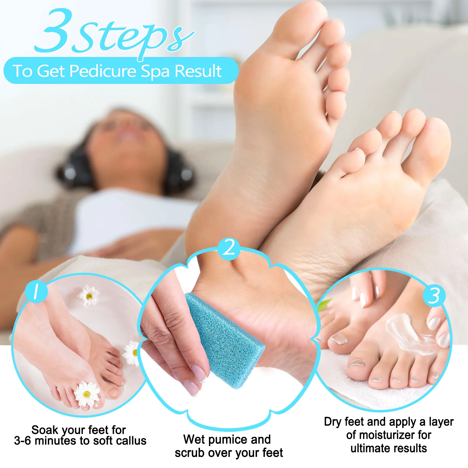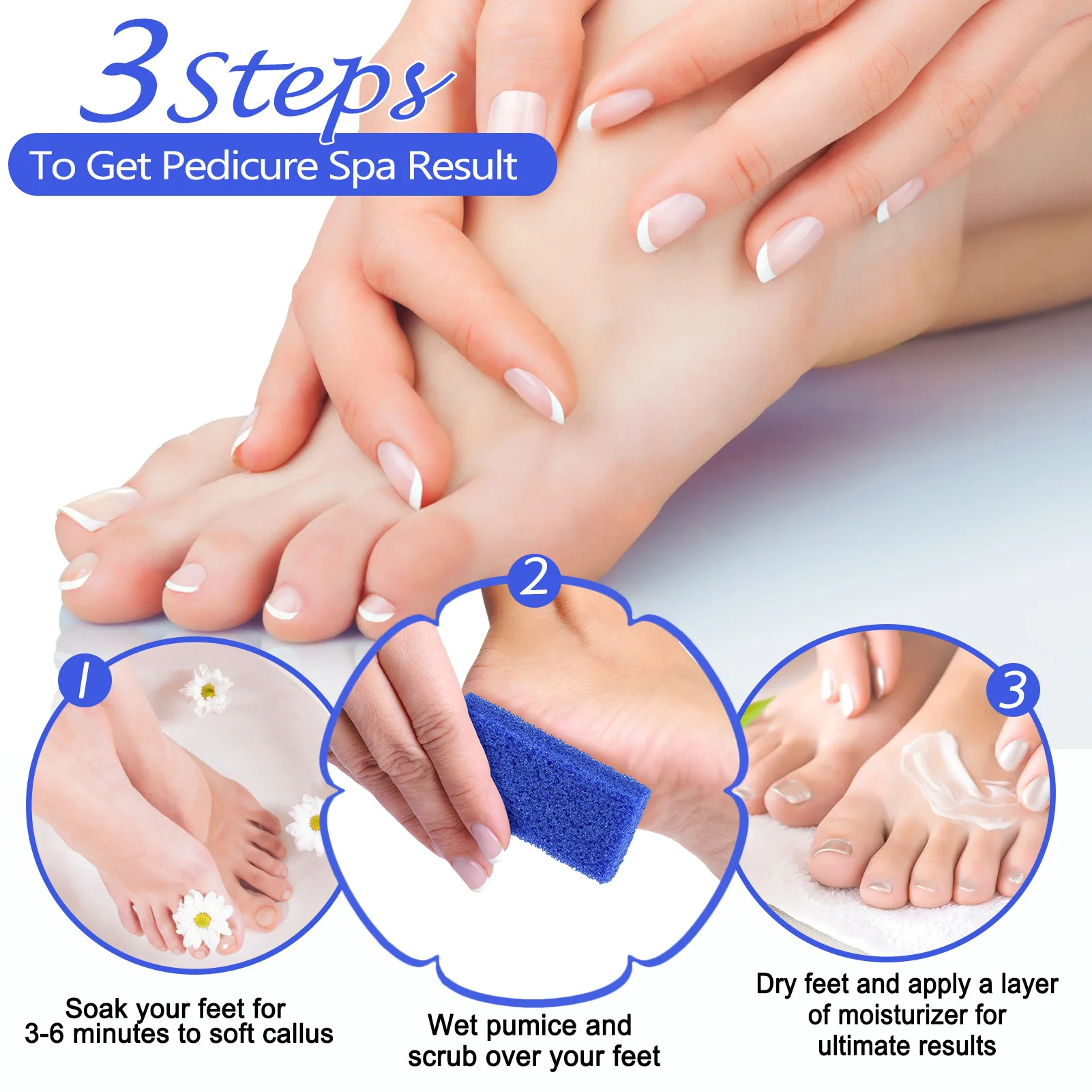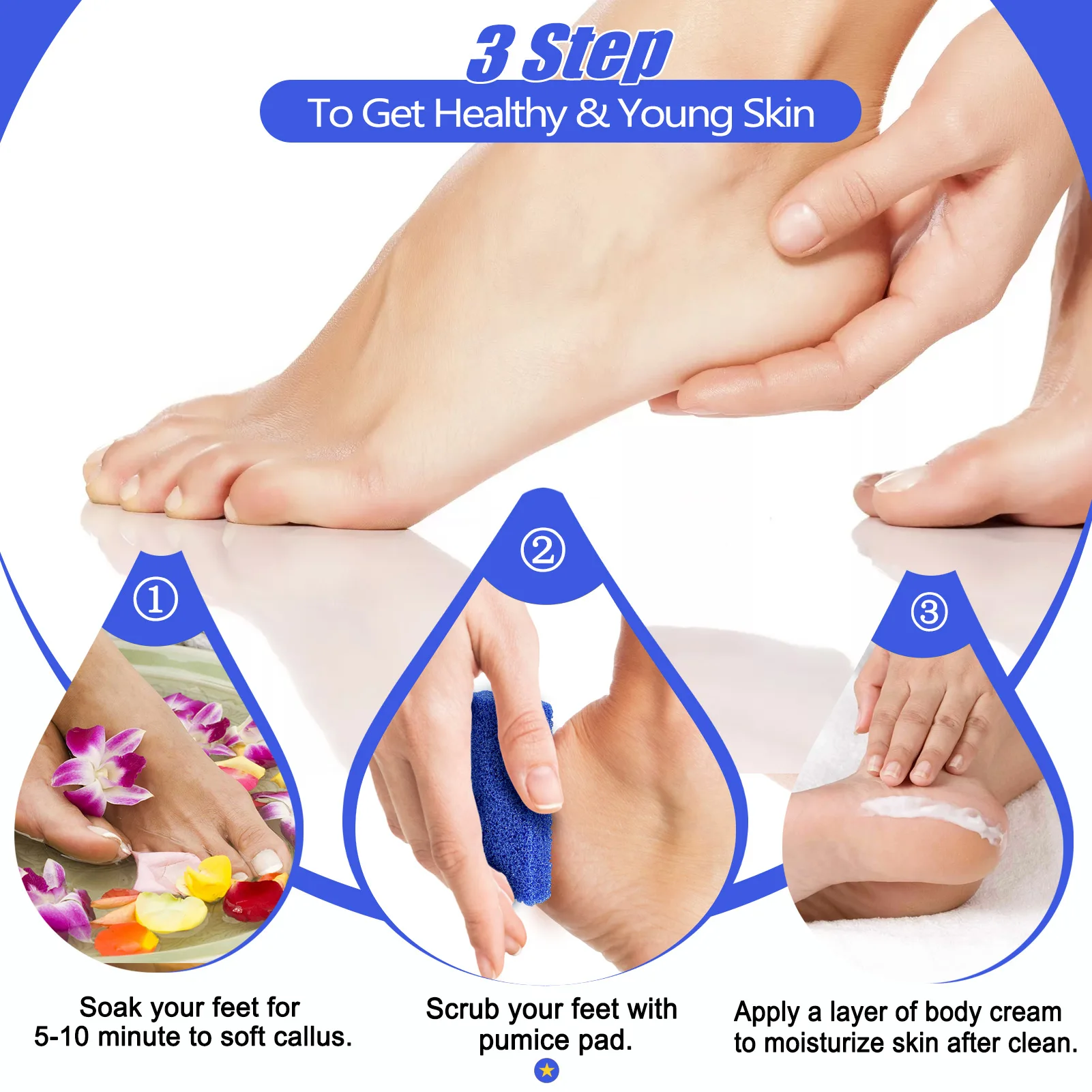 1.Soak your callus with warm water until soft, wet your pumice sponge
